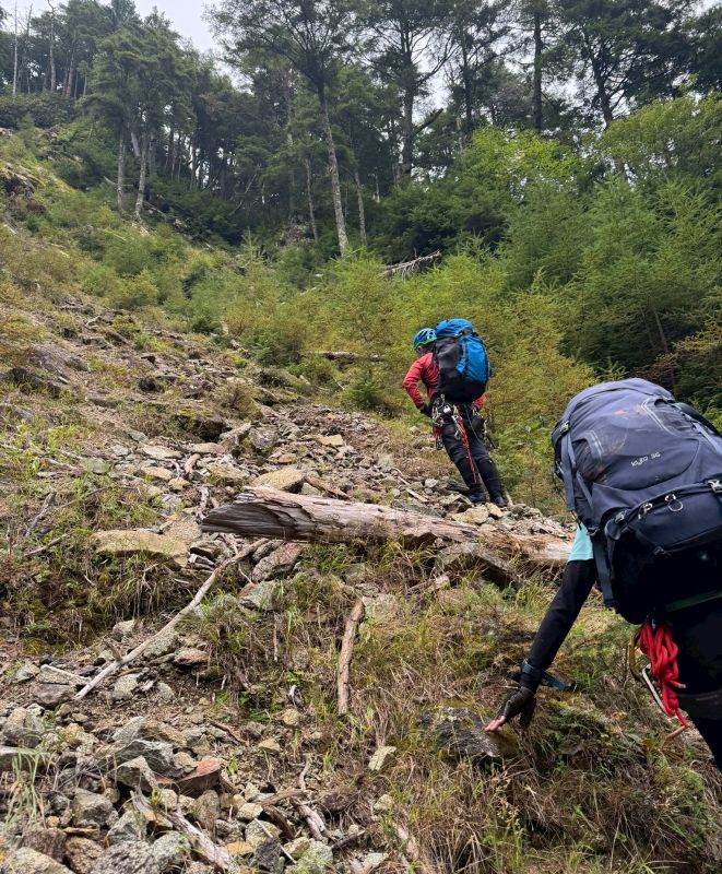 高橋さんが踏み跡からルートを見つけてくれた。まさに藪の中を掻き分けて道を切り開いた。この辺りから緊張感がかなり高まった。