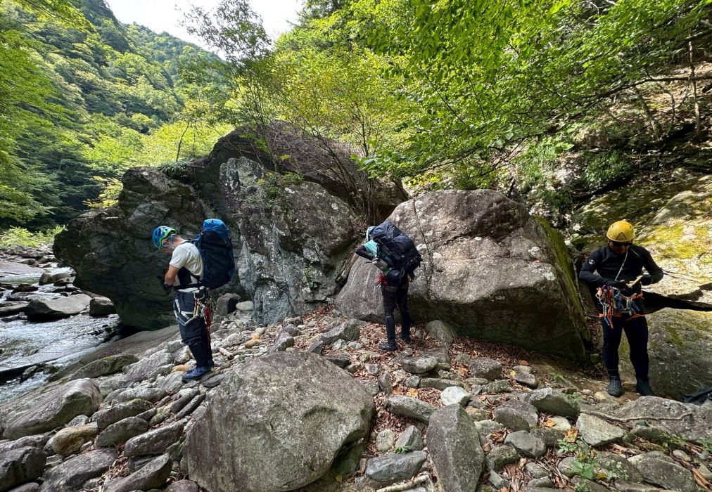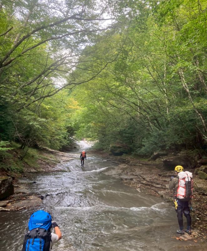 釜ノ沢はもともと応用ステップ「泊りの沢登り」9月6-7日の予定が組まれていたが、台風15号の影響により中止となったため、平日を挟んでも行けるメンバー4名で行ってきました。