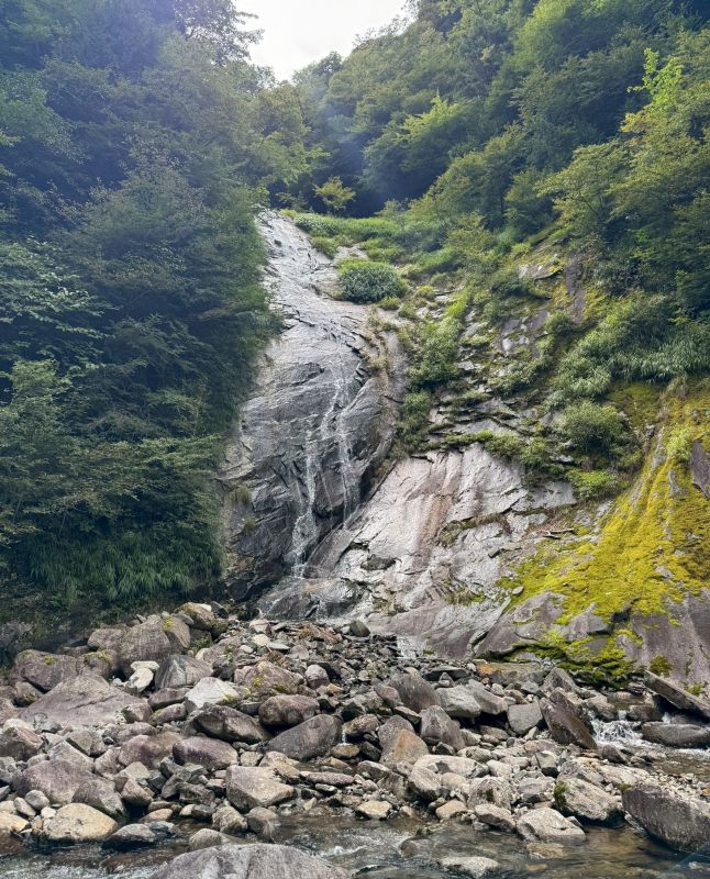 両門滝。向かって右側の滝は夏場ならウォータースライダーできるような滝でした。
